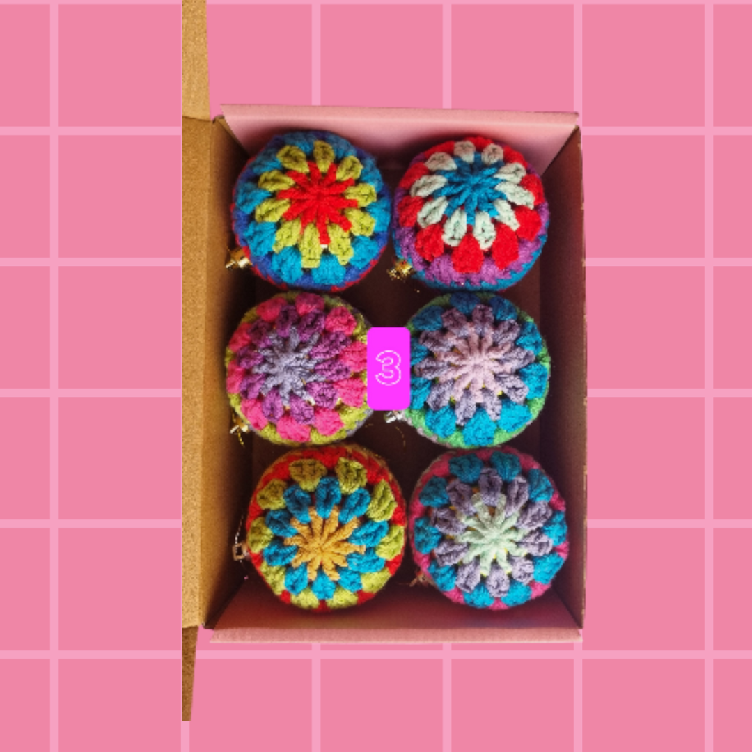 6 Hermosas Esferas de 6 cms. tejidas con hilo de algodón a crochet.
