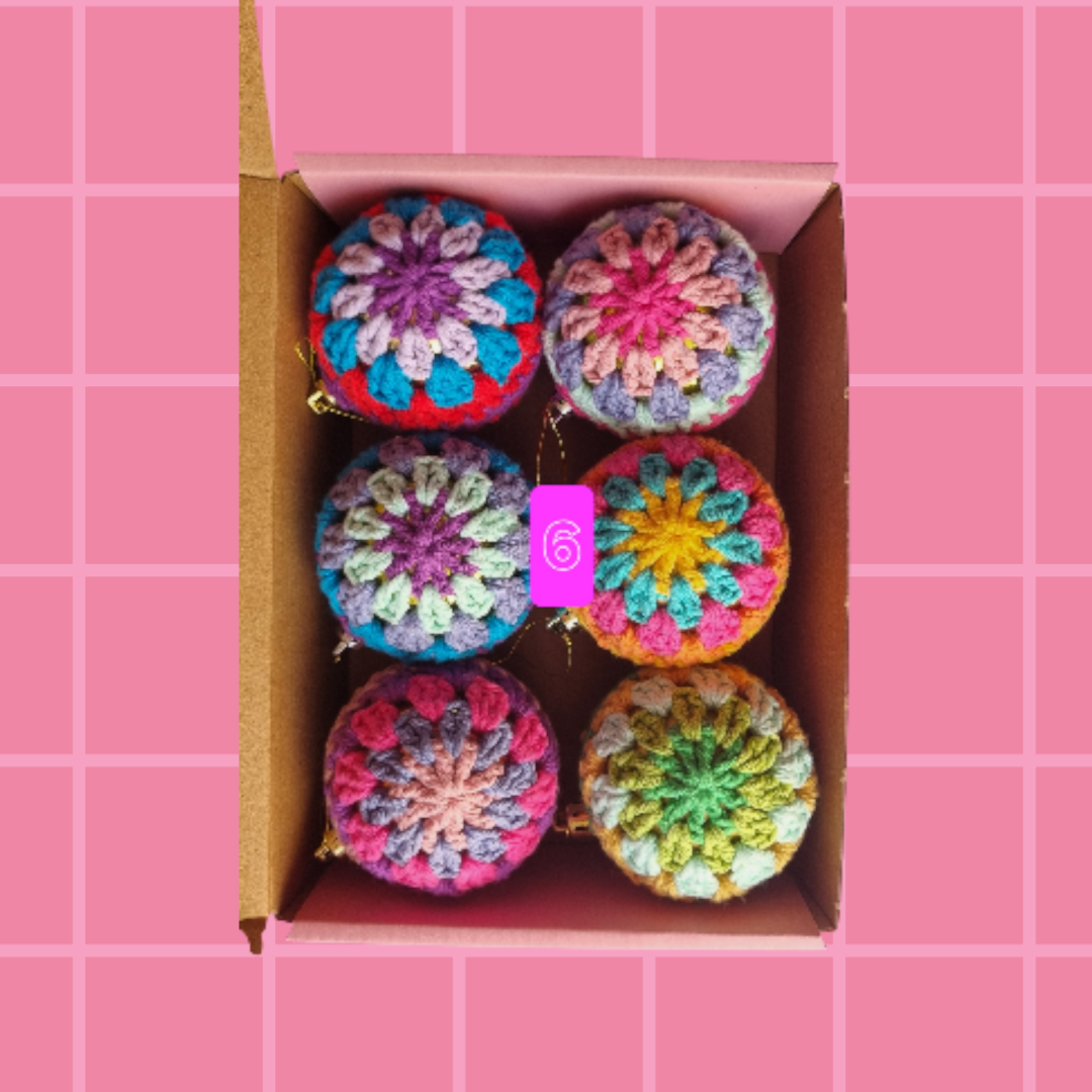 6 Hermosas Esferas de 6 cms. tejidas con hilo de algodón a crochet.